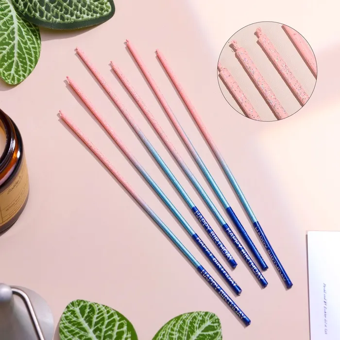 Свечи в торт, 6 штук Happy, 17 см, розовый с голубым — Характеристики