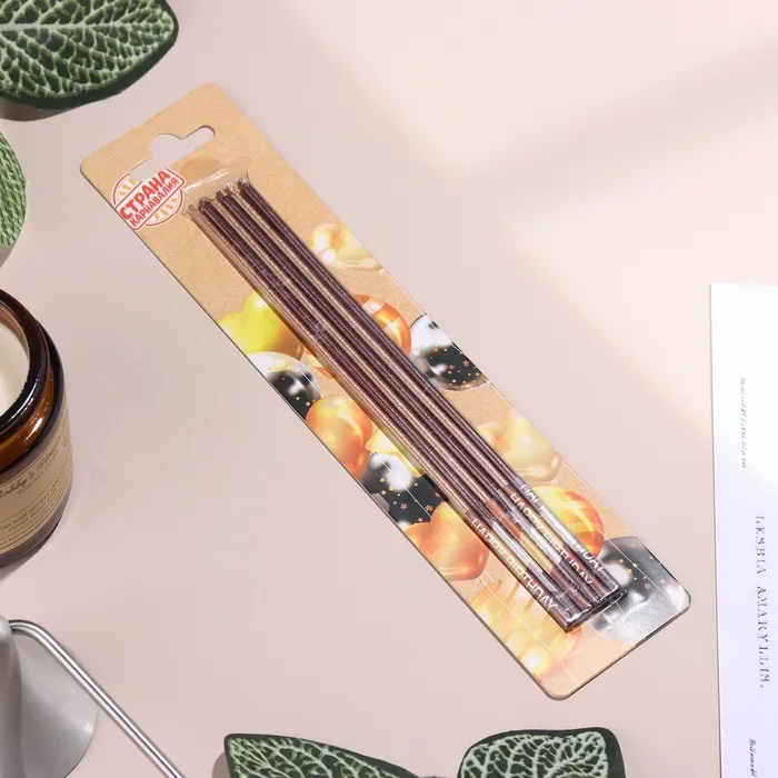 Свечи в торт, 6 штук Happy, 17 см, золотой с металликом — Характеристики