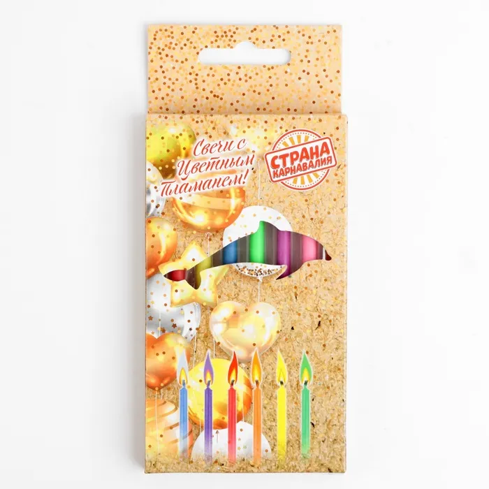 Свечи в торт 6 штук, с цветным пламенем, 6 см — Характеристики