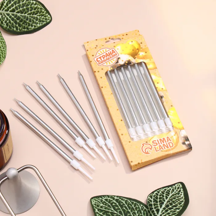 Свечи в торт коктейльные «Шайн», 6 шт., 10 см, серебряный металлик — Характеристики