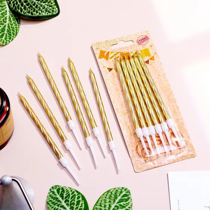 Свечи в торт «Металлик» , 14 см, 6 шт. с подставкой, золотые — Характеристики