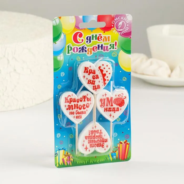 Свечи в торт на шпажках «Сердечки для красотки», 2.6 см, 25 г, набор 4 шт. — Характеристики