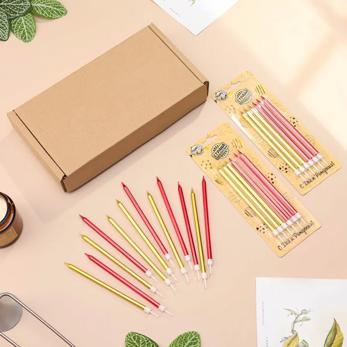 Свечи в торт «Ройс», 13 см, высокие, 12 шт., бордовые и золотые — Характеристики