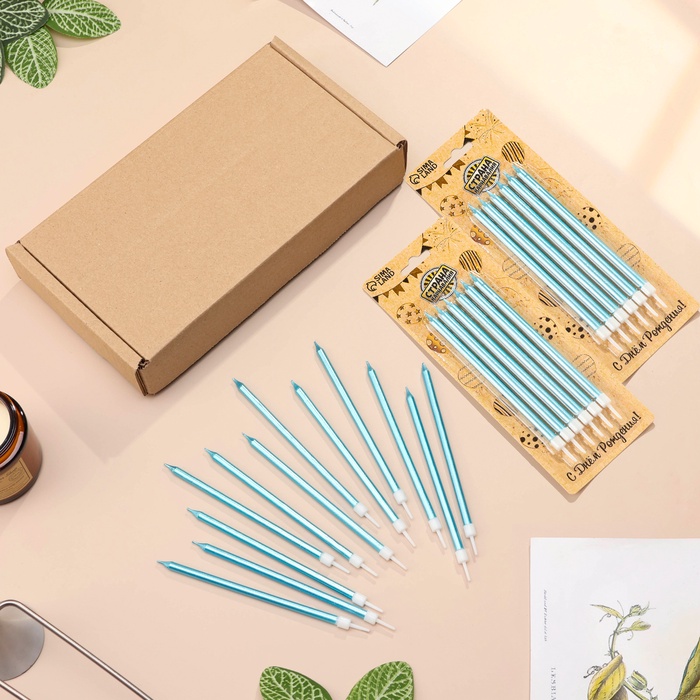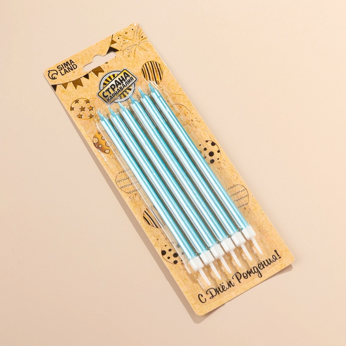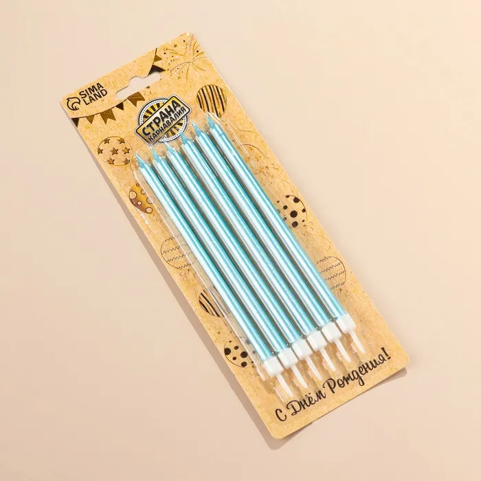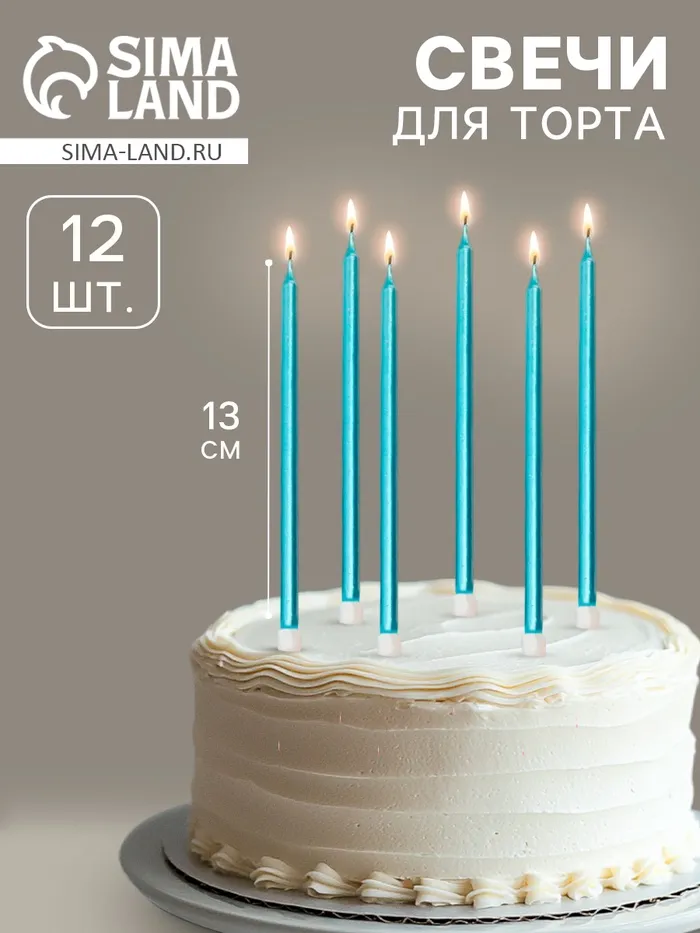 Свечи в торт «Ройс», 13 см, высокие, 12 шт., небесно-голубой металлик — Характеристики