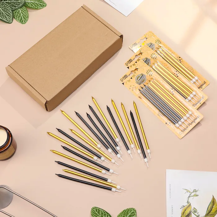 Свечи в торт «Ройс», 13 см, высокие, 18 шт., чёрные и золотые — Характеристики