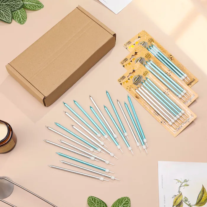 Свечи в торт «Ройс», 13 см, высокие, 18 шт., серебряные и голубые — Характеристики