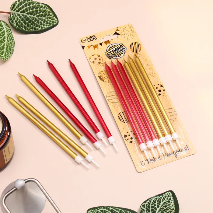 Свечи в торт «Ройс», 6 шт., высокие, 13 см, бордовые и золотые — Характеристики