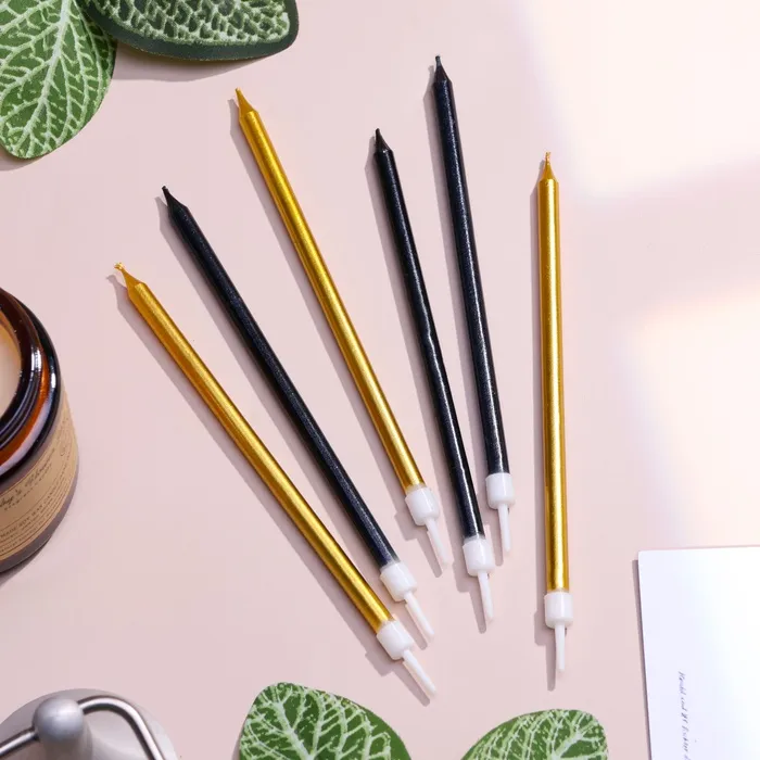 Свечи в торт «Ройс», 6 шт., высокие, 13 см, чёрные и золотые