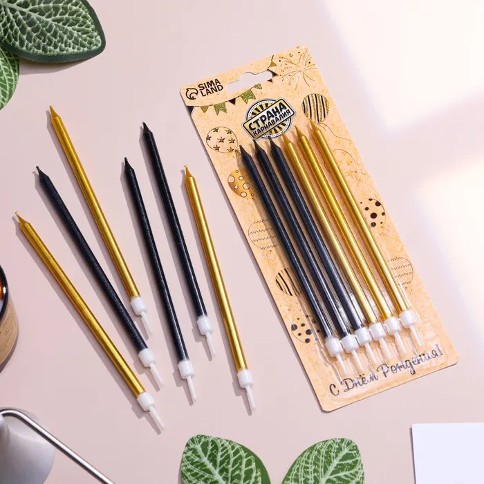 Свечи в торт «Ройс», 6 шт., высокие, 13 см, чёрные и золотые — Характеристики