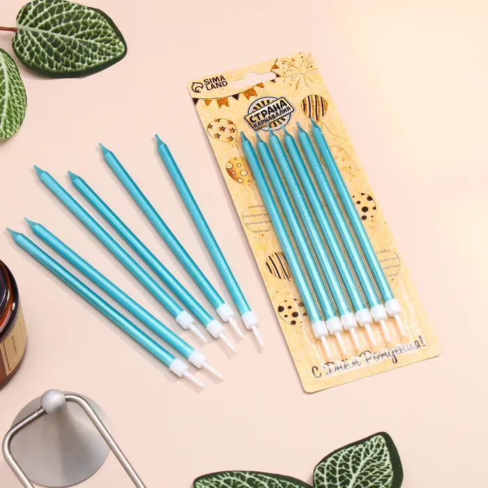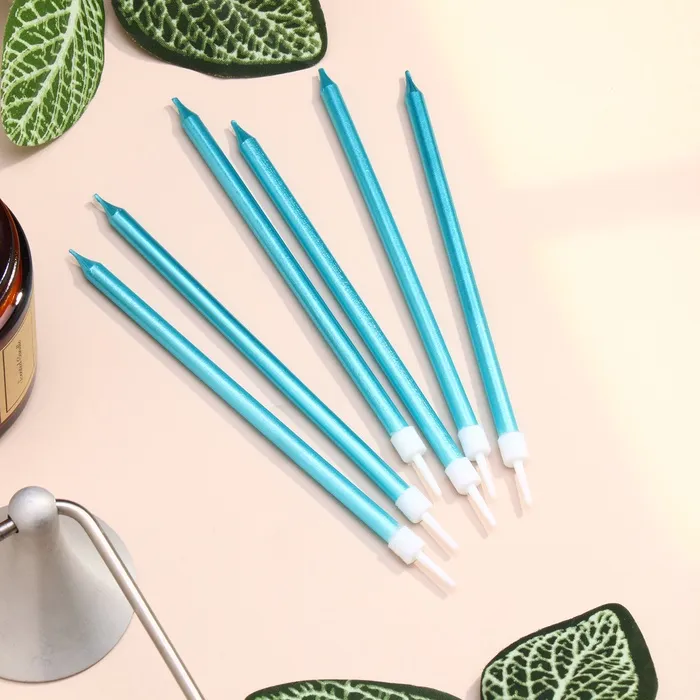 Свечи в торт «Ройс», 6 шт., высокие, 13 см, небесно-голубой металлик — Характеристики