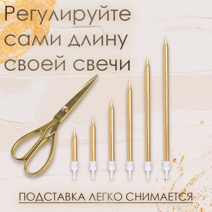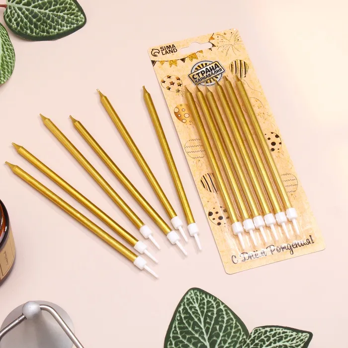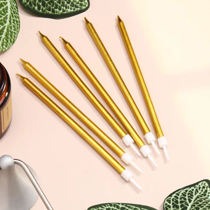 Свечи в торт «Ройс», 6 шт., высокие, 13 см, золотой металлик — Характеристики