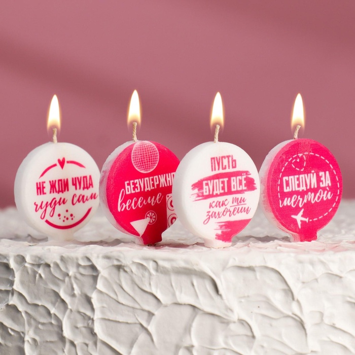 Свечи в торт «С юмором», бело-розовые, 4×4.4 см, 4 шт. — Характеристики