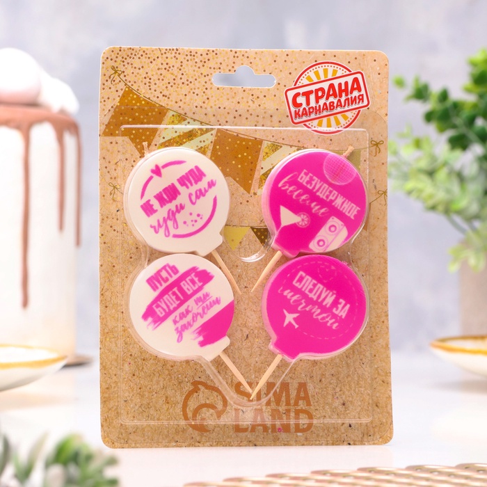 Свечи в торт «С юмором», бело-розовые, 4×4.4 см, 4 шт.