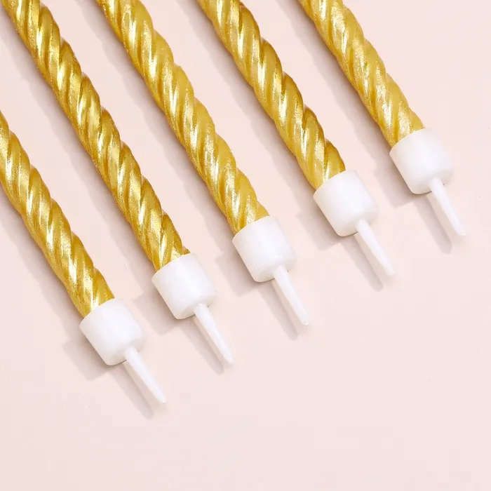 Свечи в торт с подставками, золотые, 6 шт., 8 см — Характеристики