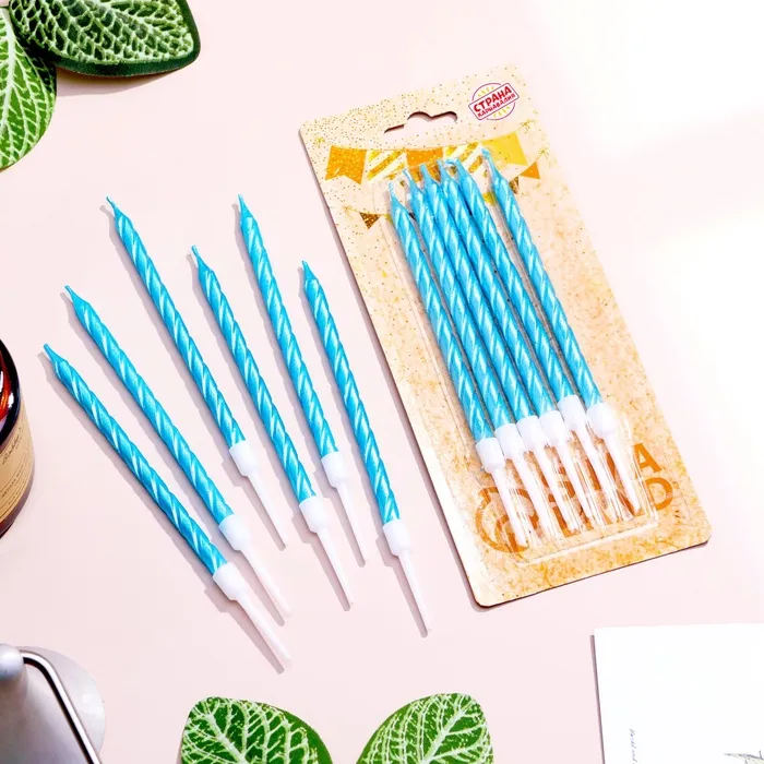 Свечи в торт витые с подставкой, 6 шт., 11 см, небесно-голубой — Характеристики