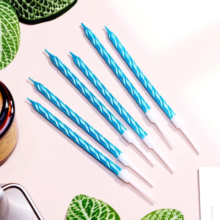 Свечи в торт витые с подставкой, 6 шт., 11 см, небесно-голубой