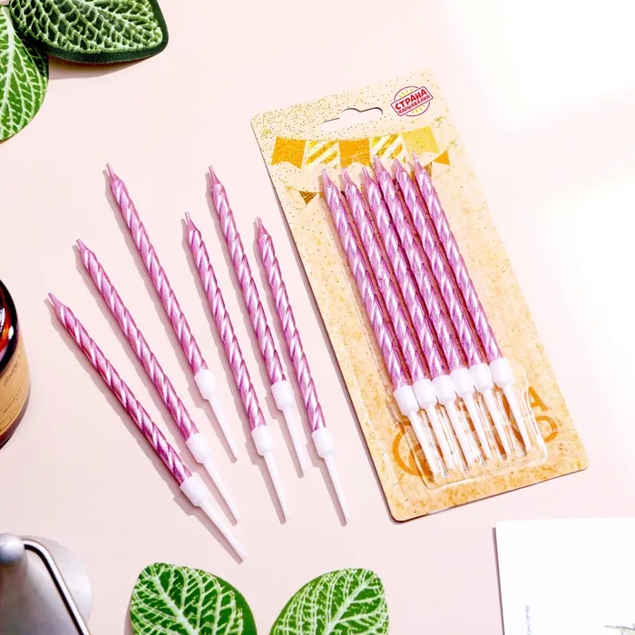 Свечи в торт витые с подставкой, 6 шт., 11 см, розовый блик — Характеристики