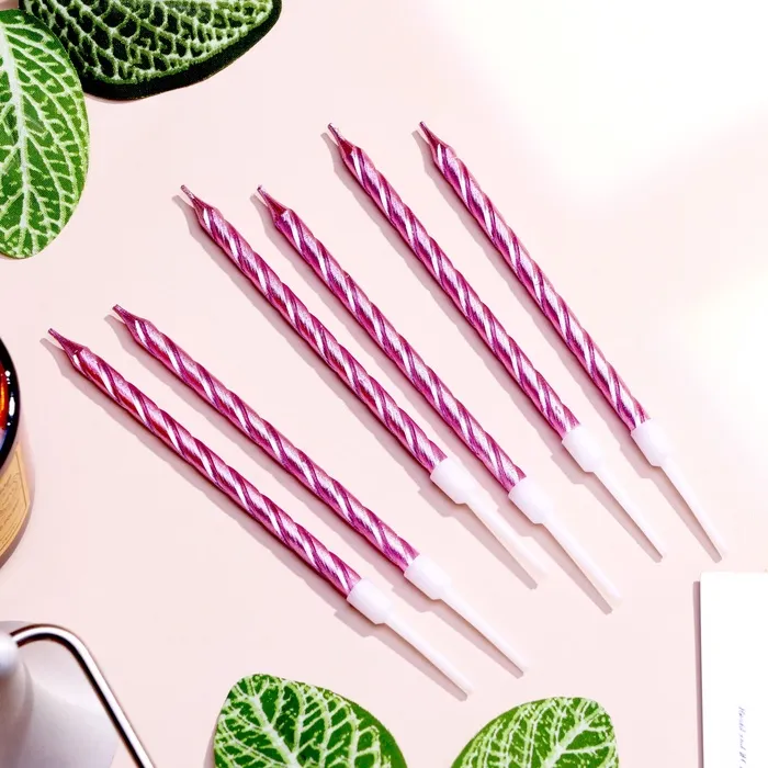 Свечи в торт витые с подставкой, 6 шт., 11 см, розовый блик
