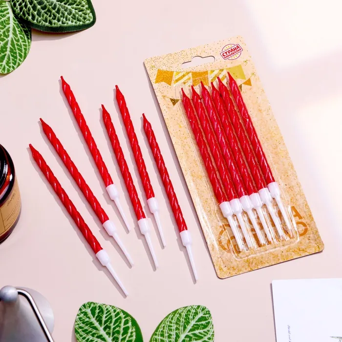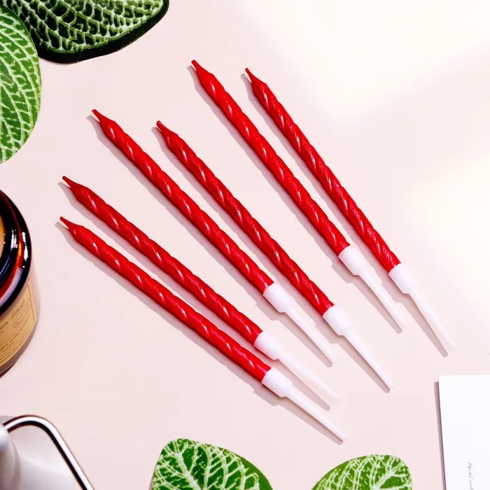 Свечи в торт витые с подставкой, 6 шт., 11 см, рубиновые
