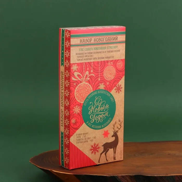 Свечи витые с декором новогодние «Удачного Нового года!», в наборе 2 свечи, 4 шарика, елочная игрушка — Характеристики