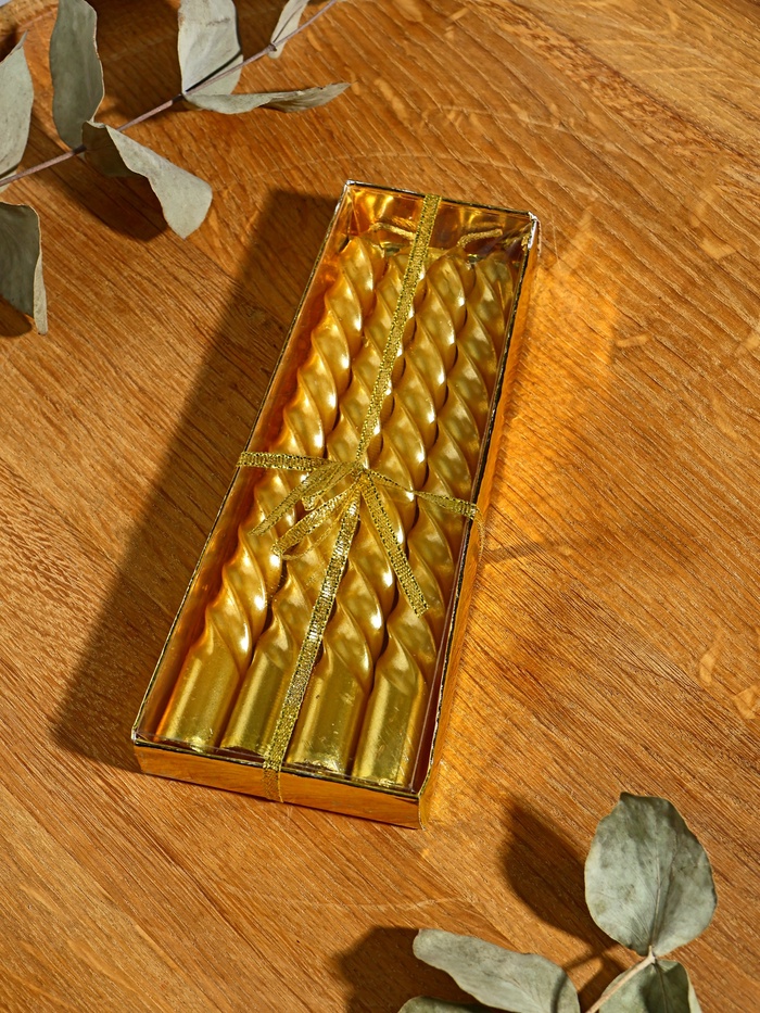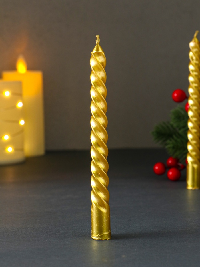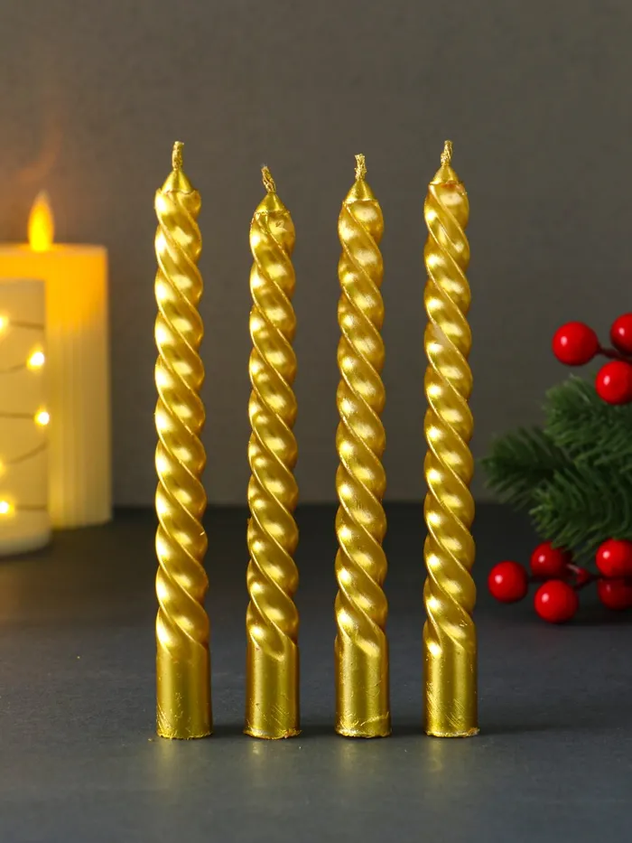 - Эстетика и практичность: благодаря витой форме и золотистому цвету, эти свечи не только радуют глаз, но и служат надежным источником мягкого освещения.