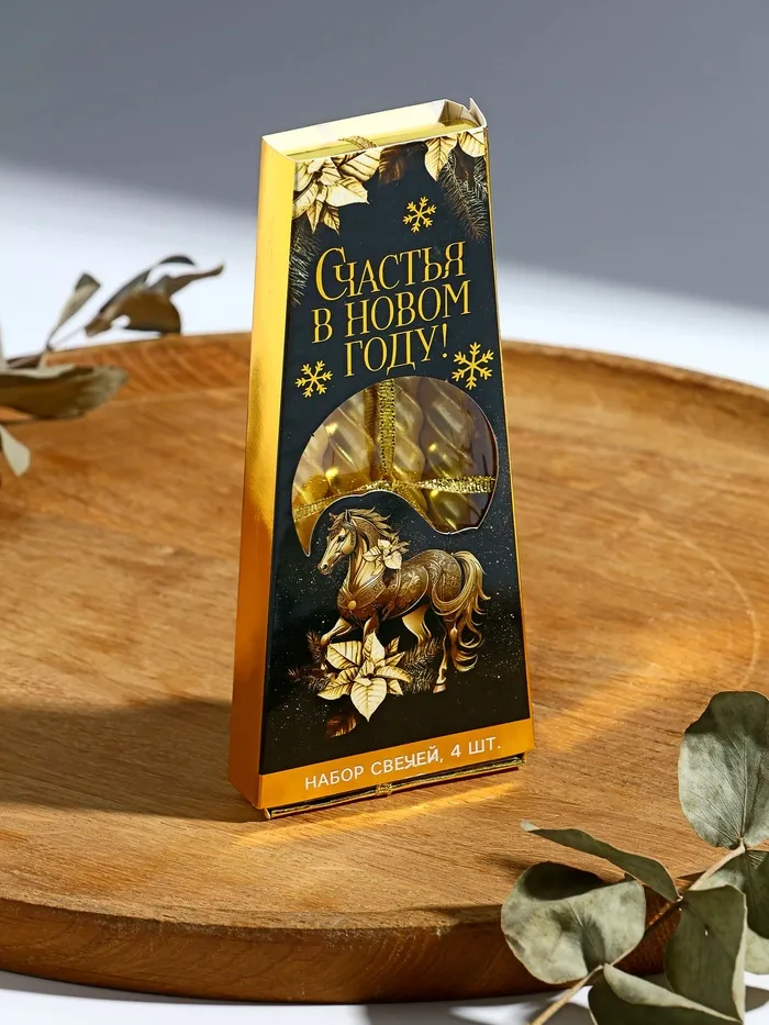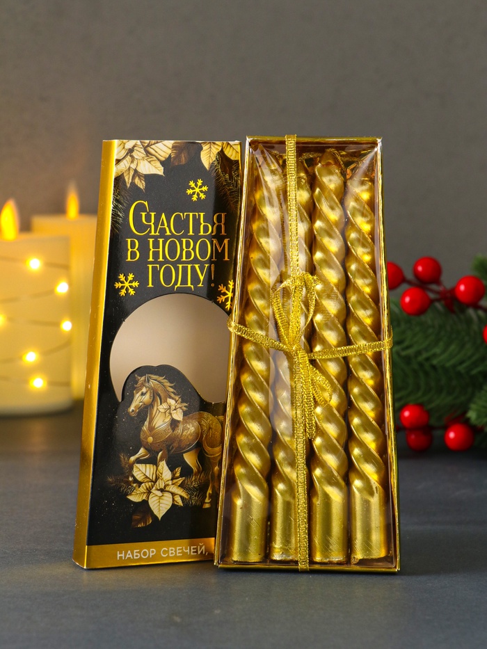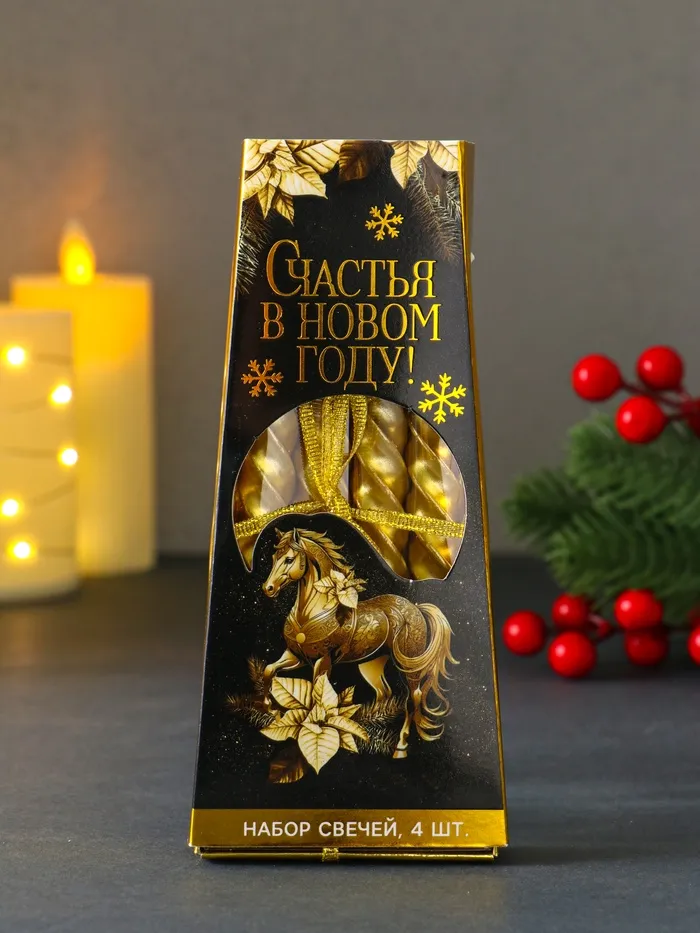 Свечи витые «Счастья в новом году. Золотой конь», 4 шт., 6.8×16×2 см — Характеристики
