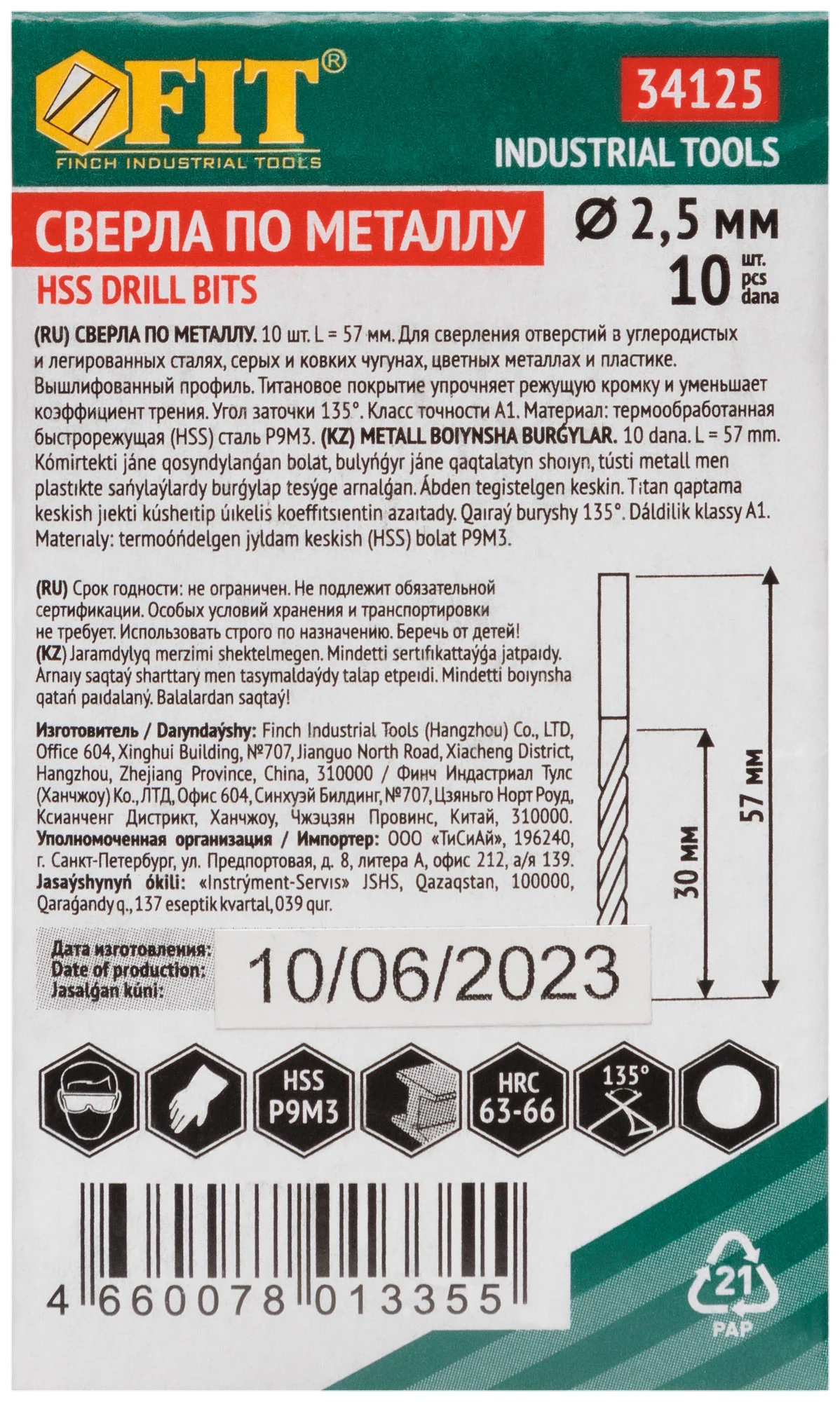 Используя набор сверл FIT, вы легко справитесь с задачами по сверлению металла на вашем производственном объекте или в мастерской. Эти сверла обеспечат чистоту и точность отверстий, что особенно важно при изготовлении металлических конструкций.
