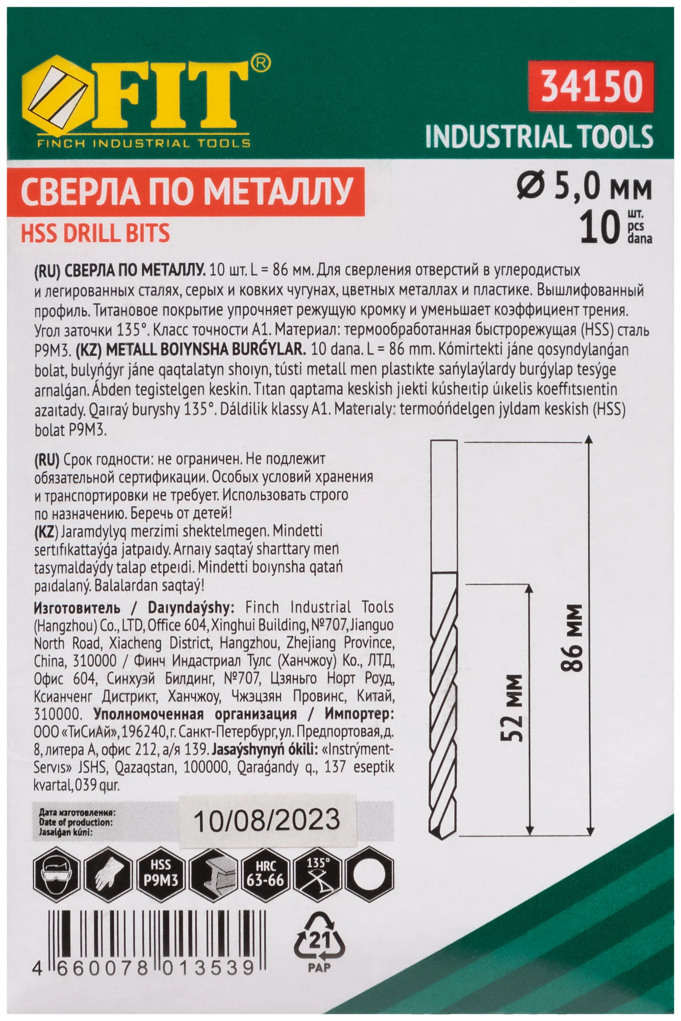 Сверла FIT диаметром 5,0 мм с титановым покрытием обеспечат вам высокую точность и надежность при сверлении металла. Этот комплект из 10 штук станет отличным дополнением для любого профессионала, занимающегося металлообработкой.