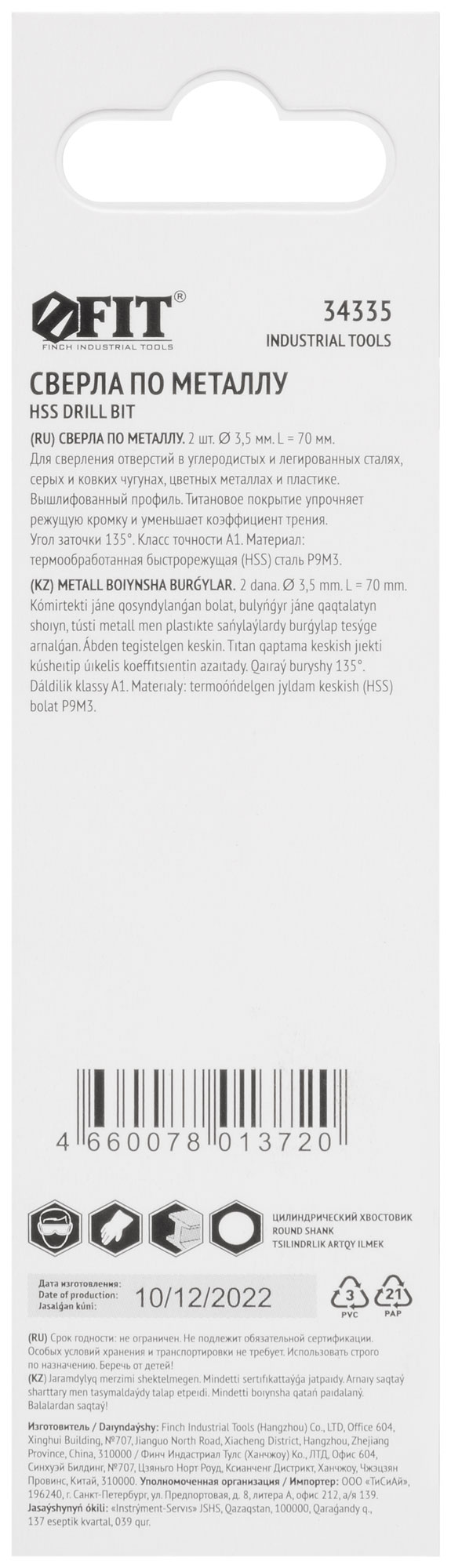 Выберите сверло HSS с титановым покрытием от FIT, чтобы обеспечить высокое качество и долговечность вашего инструмента.
