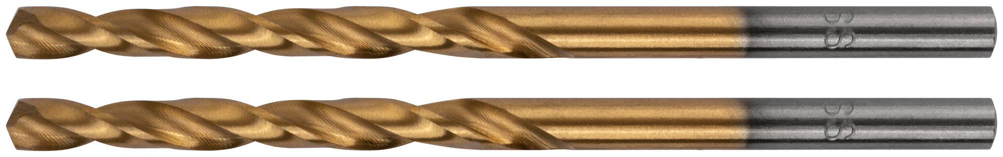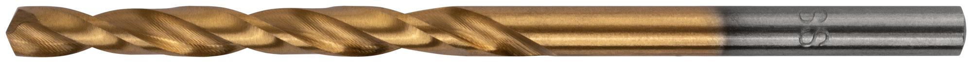 Сверло выполнено из быстрорежущей стали HSS с титановым покрытием, что увеличивает его износостойкость и снижает трение при работе. Цилиндрический хвостовик обеспечивает надежную фиксацию в патроне, а угол заточки в 135 градусов способствует легкому началу сверления и снижает риск смещения.