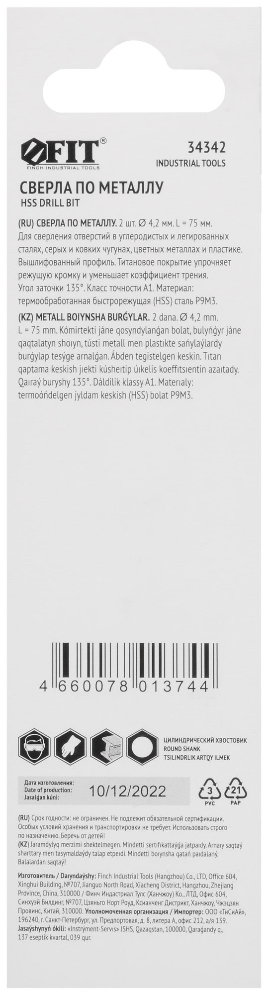 Выберите сверла FIT 34342, чтобы обеспечить надежность и долговечность при работе с металлом.