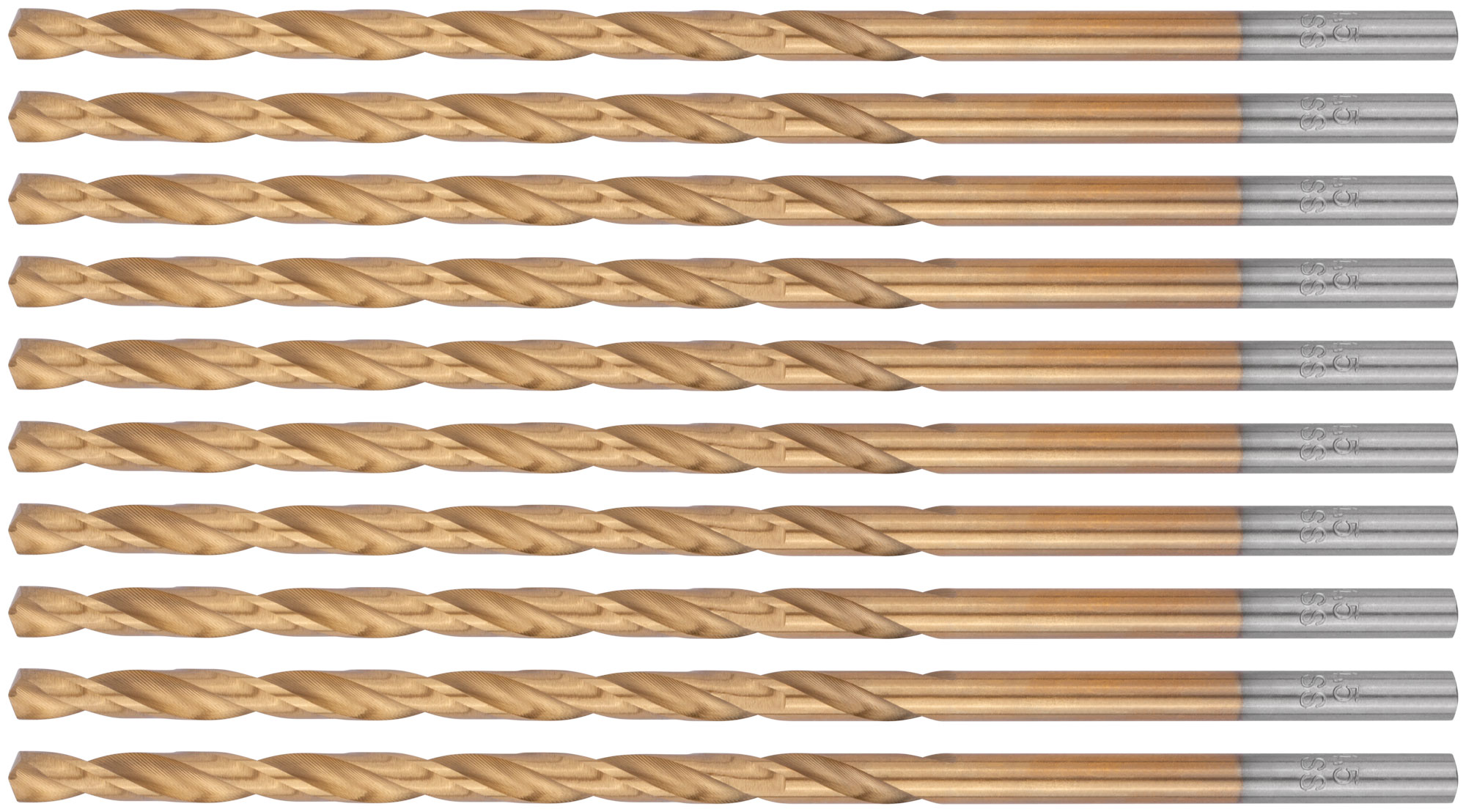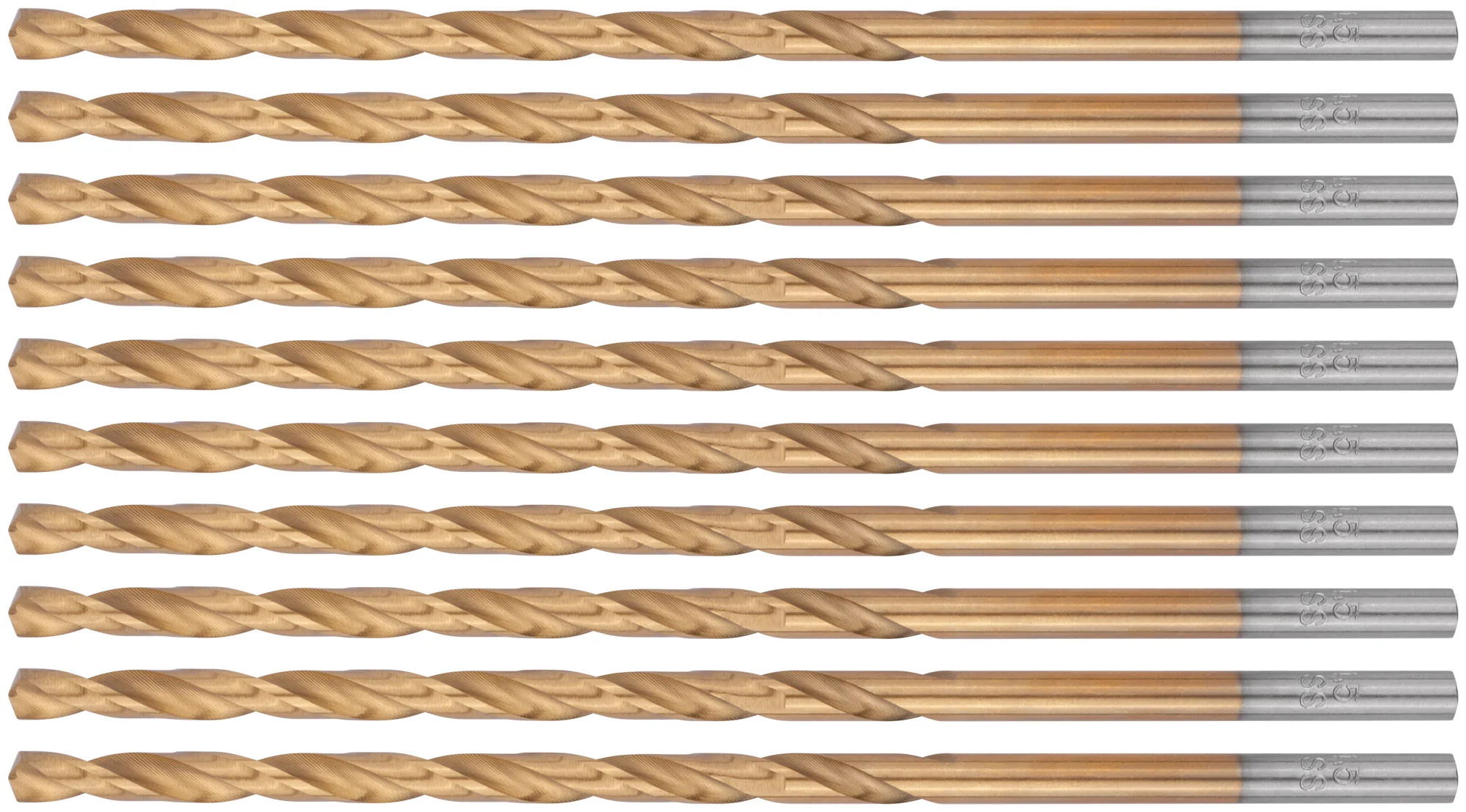 Сверла изготовлены из быстрорежущей стали (HSS) с титановым покрытием, что обеспечивает их долговечность и повышенную стойкость к износу. Их вышлифованный профиль и цилиндрический хвостовик позволяют добиваться точных результатов при сверлении даже в сложных условиях.