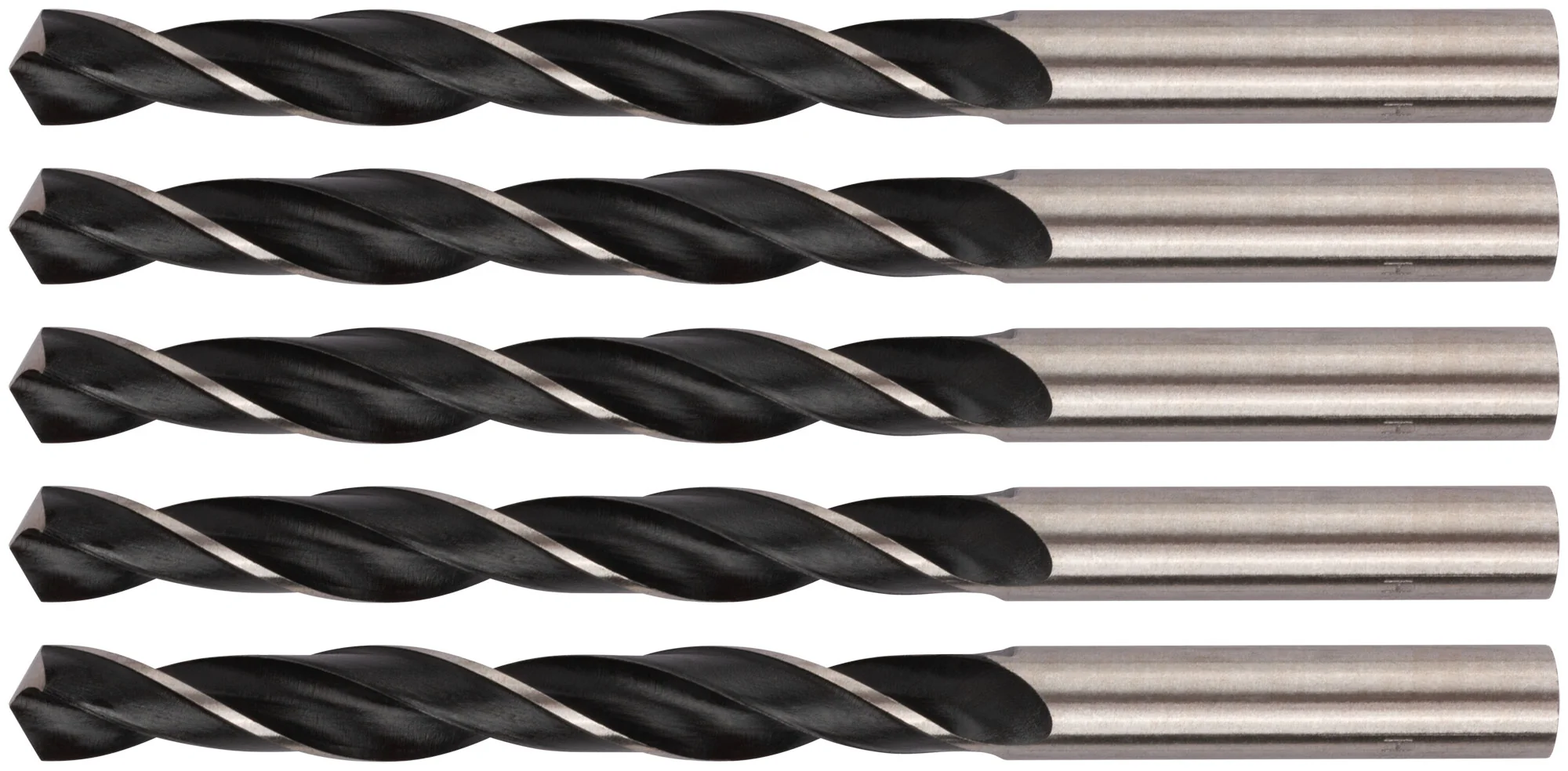 Сверла изготовлены из быстрорежущей стали (HSS) и имеют черненое покрытие, что обеспечивает высокую износостойкость и защиту от коррозии. Угол заточки в 118° способствует точному и легкому проникновению в материал.