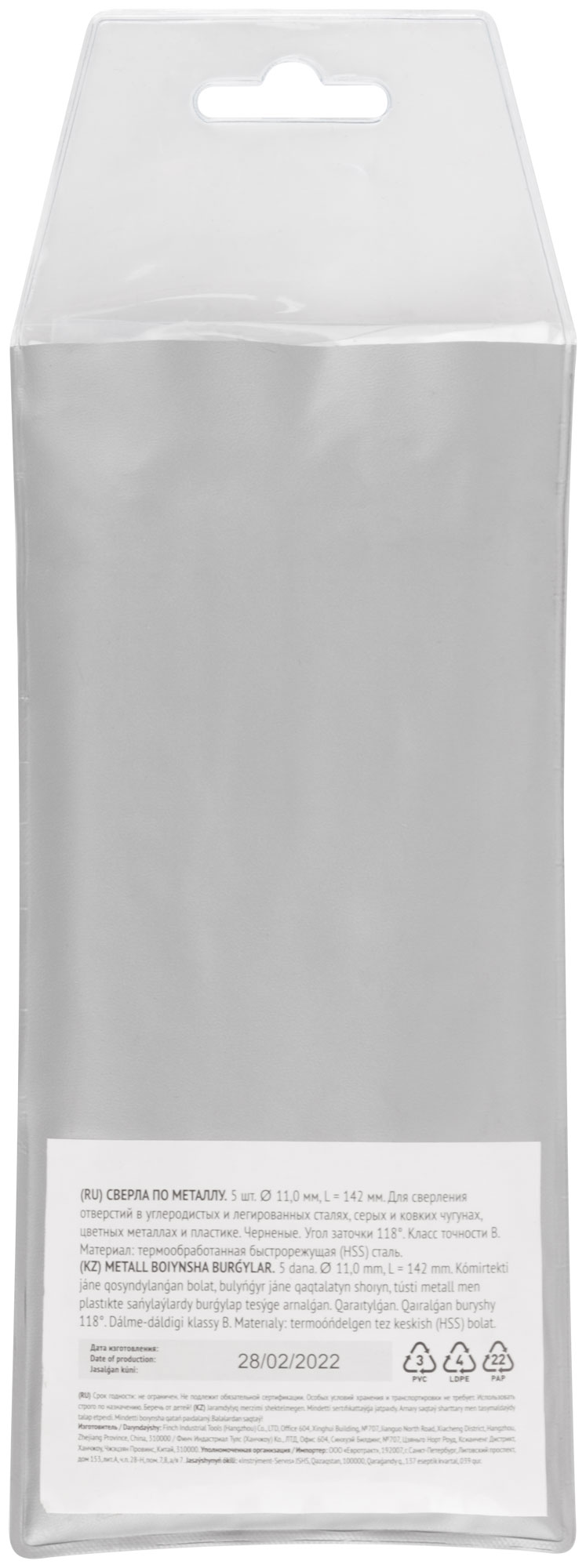 Этот набор из 5 сверл, длиной 142 мм и диаметром 11 мм, поставляется в удобной упаковке, что позволяет легко хранить и транспортировать инструмент.