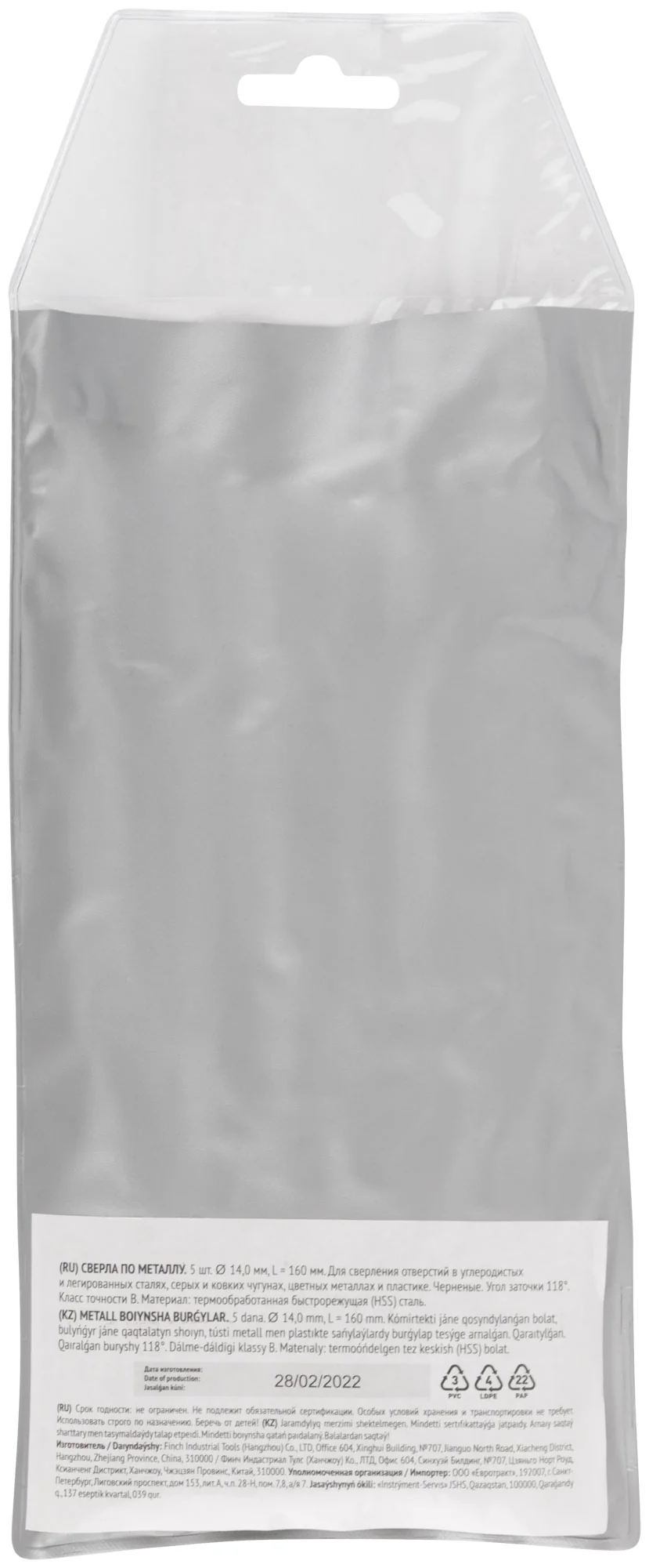 Набор черненых сверл по металлу HSS 14,0x160 мм для точной работы
