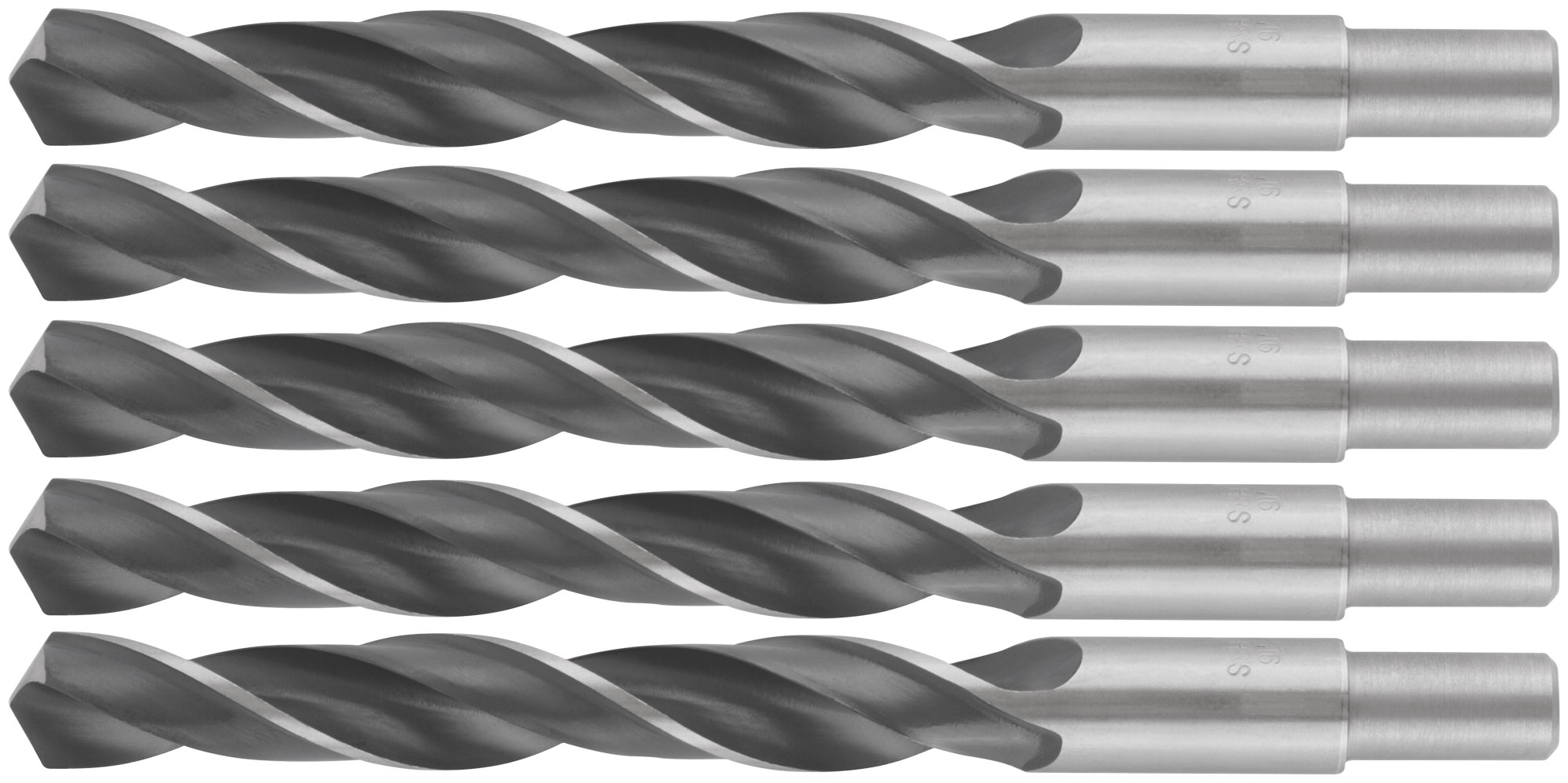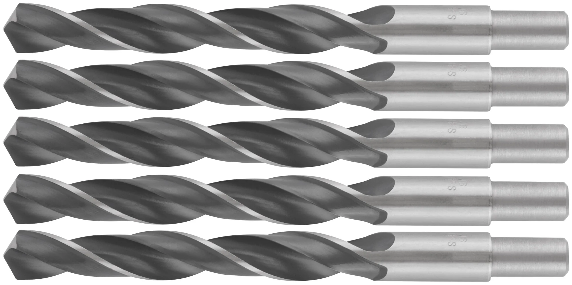 Эти сверла изготовлены из быстрорежущей стали (HSS) с черненым покрытием, что обеспечивает долговечность и стойкость к износу. Угол заточки 118° способствует эффективному проникновению в материал. Цилиндрический хвостовик облегчает установку в патрон инструмента.
