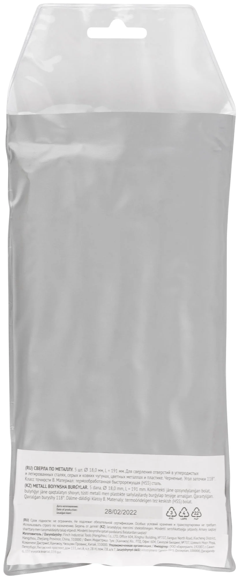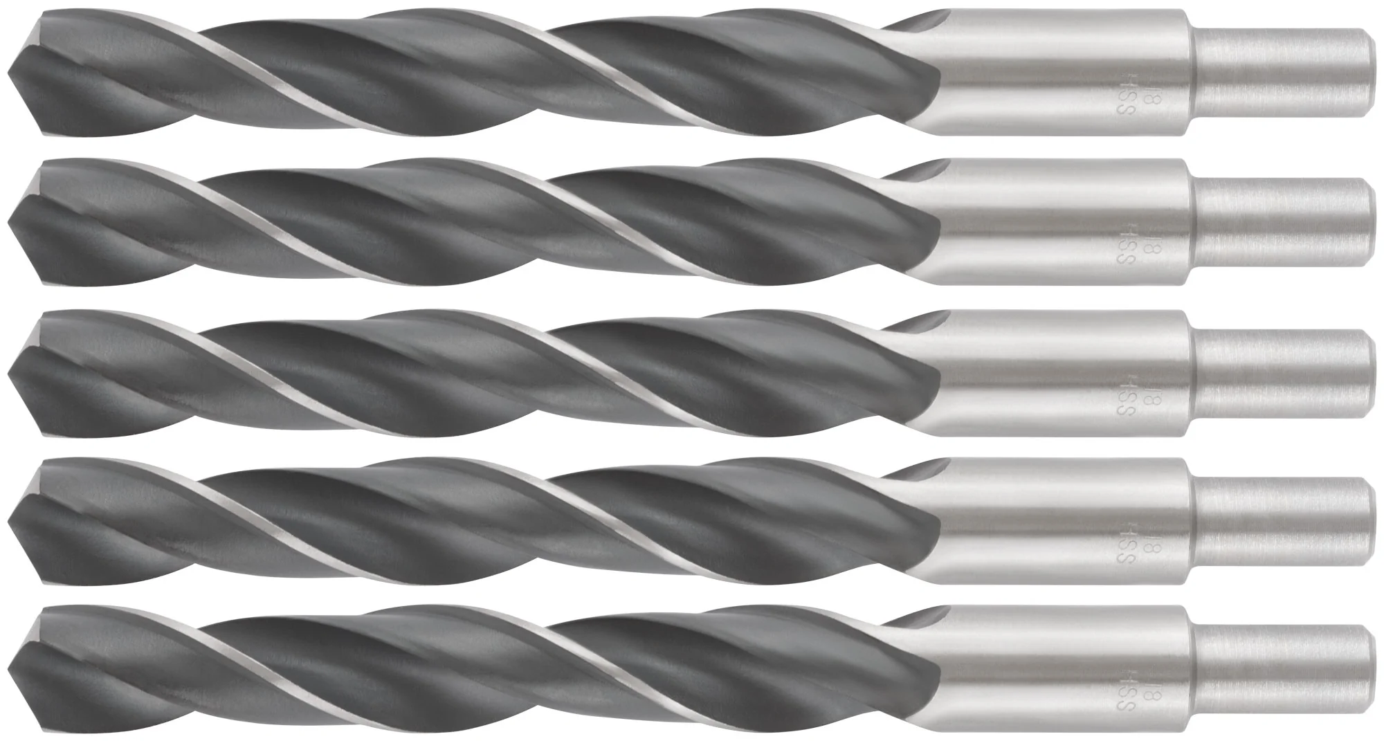 Изготовленные из быстрорежущей стали (HSS), сверла обладают высокой прочностью и устойчивостью к нагреву. Черненое покрытие защищает от коррозии и увеличивает срок службы инструмента. Угол заточки 118° облегчает вхождение сверла в материал.