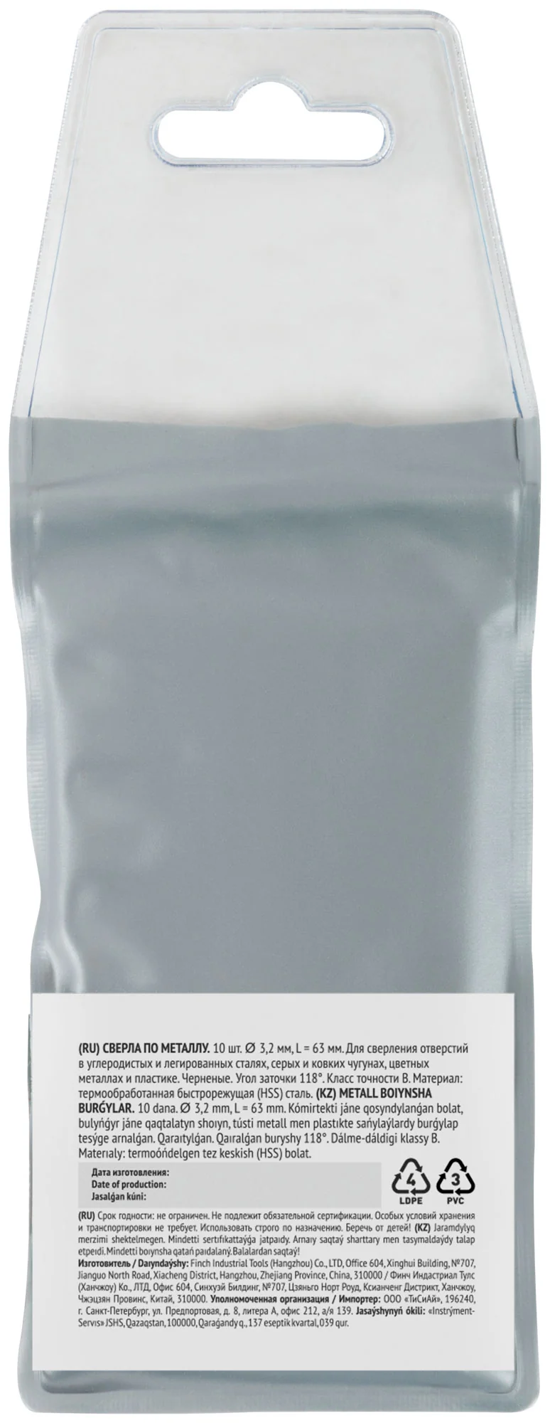 Сверла по металлу 3,2x63 мм из HSS с чернением для точного сверления