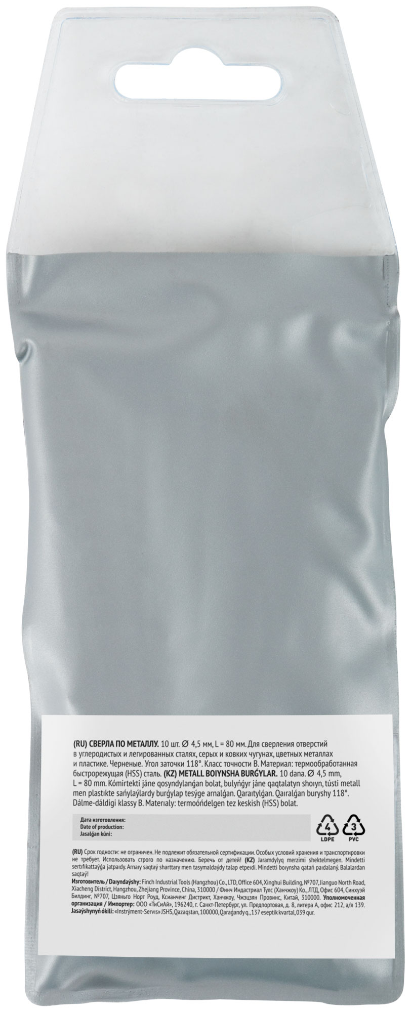 Сверла по металлу HSS черненые 4,5x80 мм для точного сверления