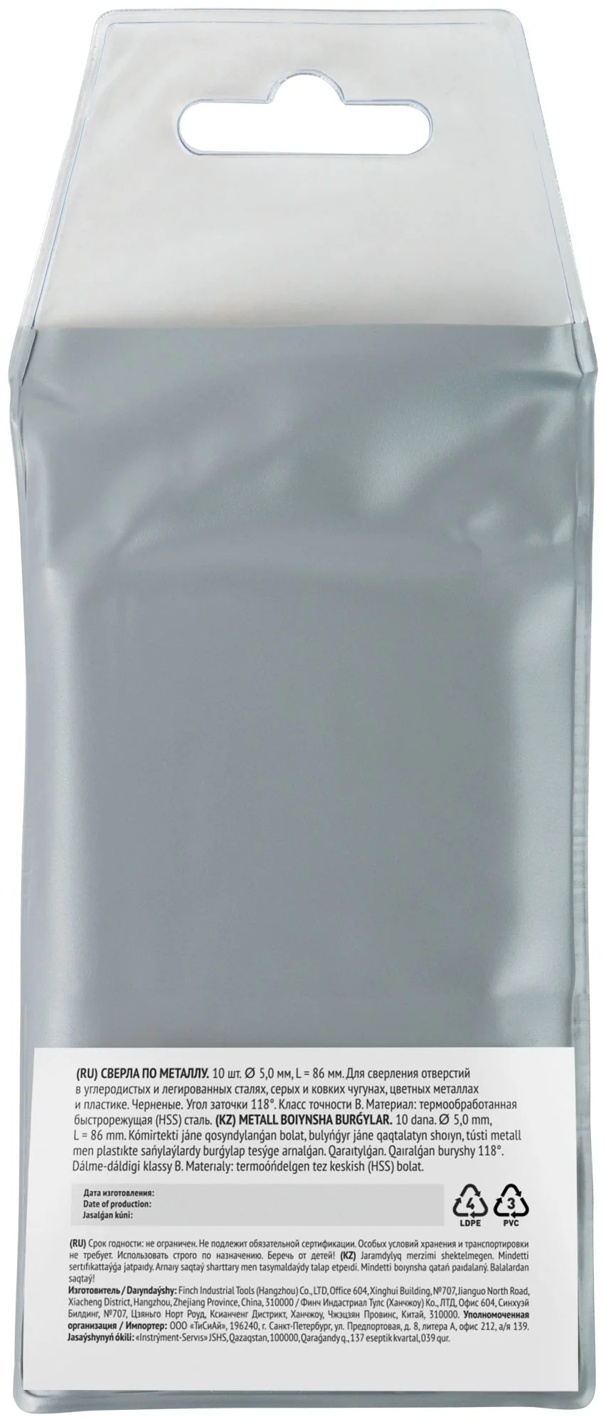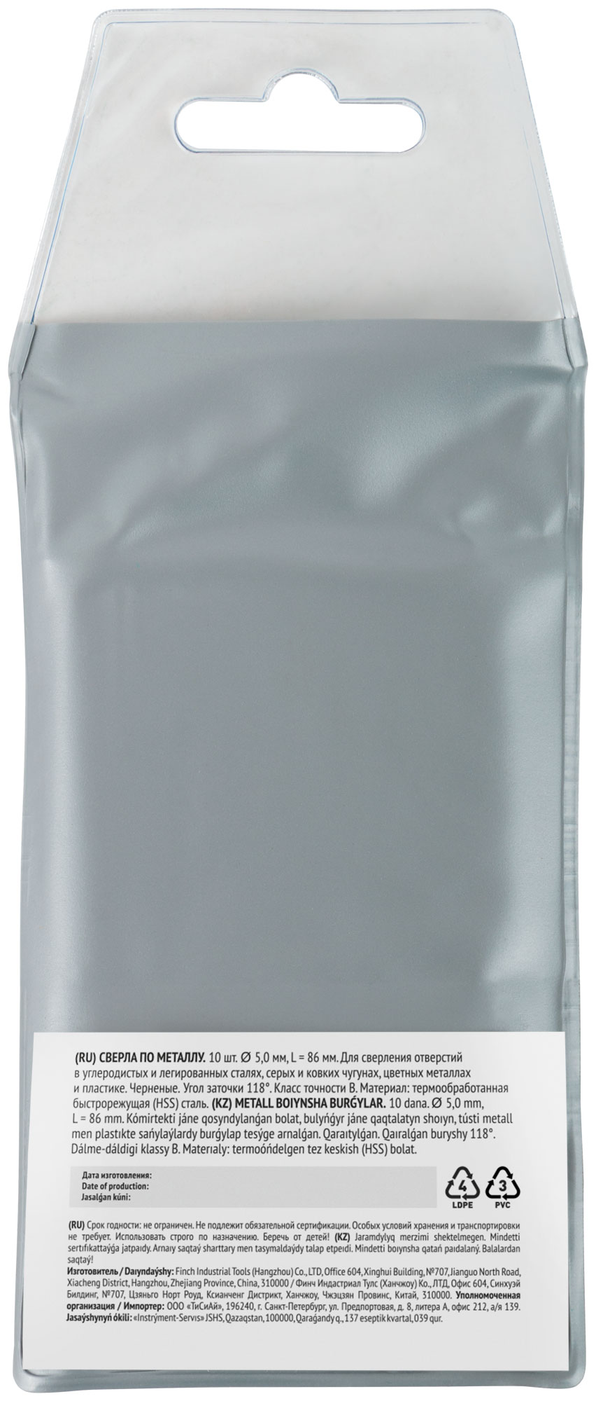 Преимущество данного набора — компактная упаковка из 10 сверл, что делает его экономически выгодным решением для профессионалов, часто работающих с металлом. Набор удобно хранить и транспортировать благодаря полиэтиленовому конверту.