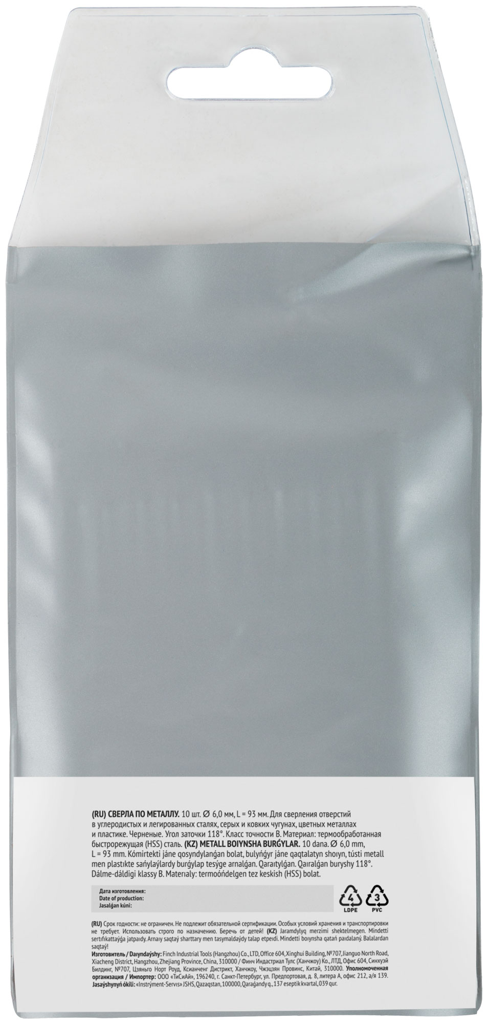 Сверла HSS черненые 6,0x93 мм для металла, 10 шт.
