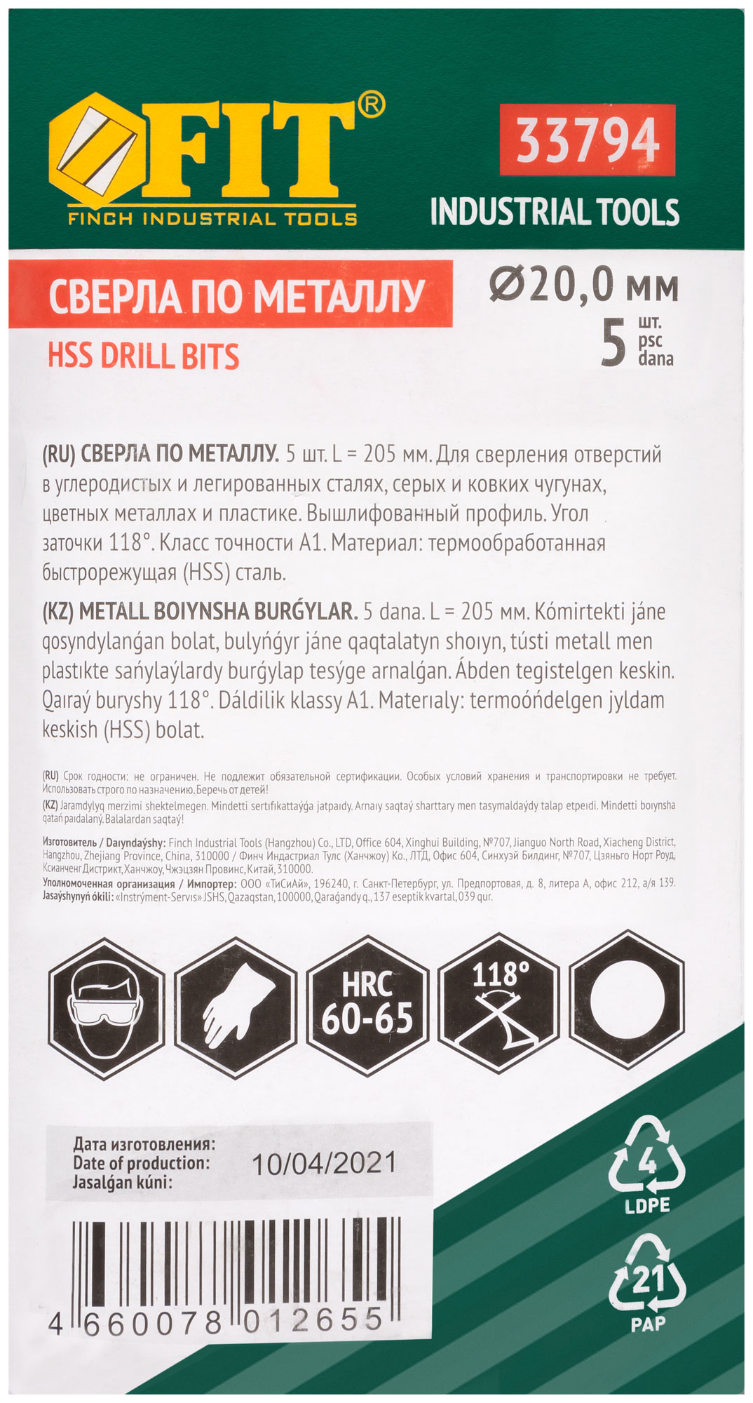 Выберите сверла по металлу HSS 20 мм от FIT, чтобы обеспечить высокую точность и долговечность в работе с металлом. Код товара: 33794.