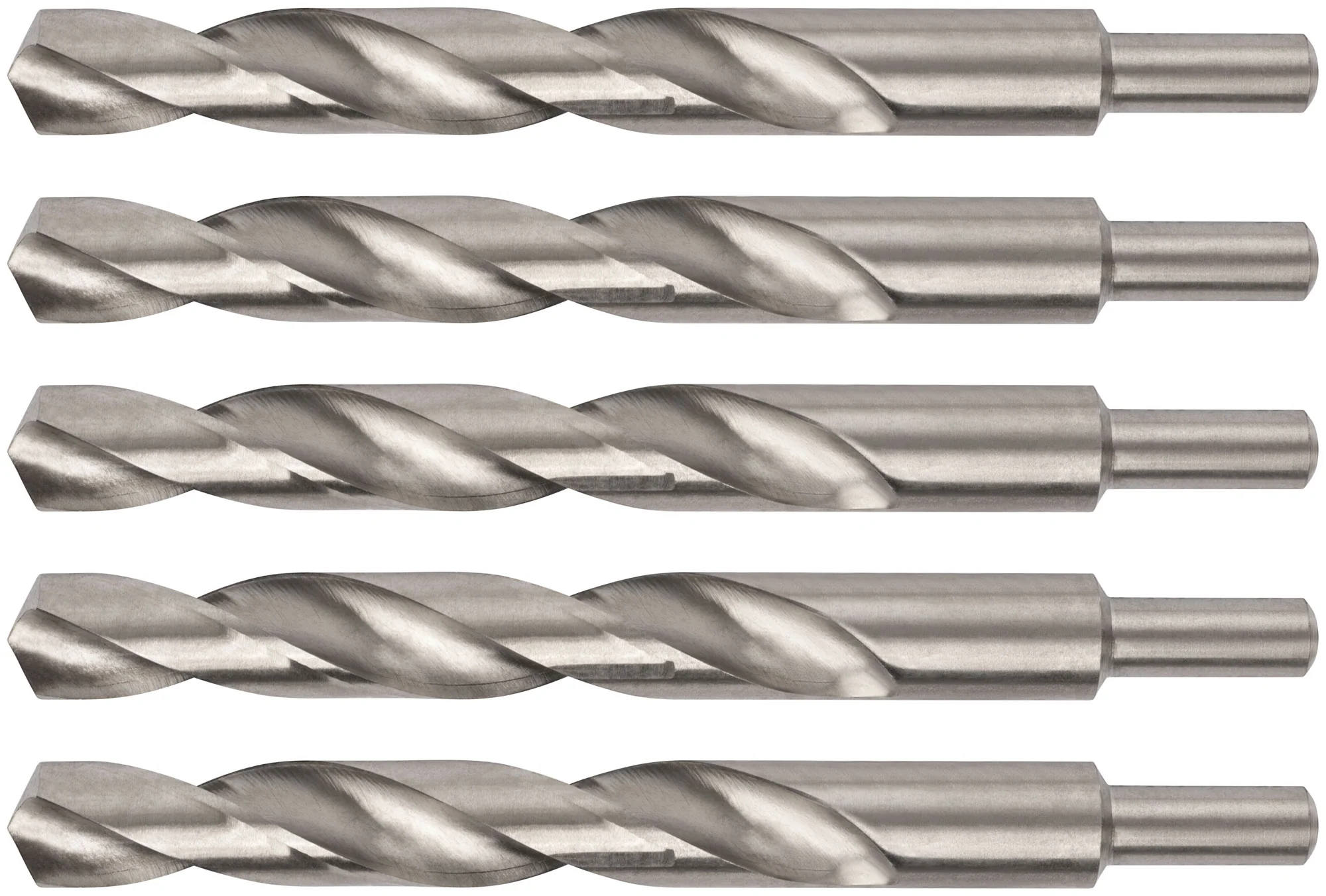 Сверла выполнены из быстрорежущей стали (HSS), что обеспечивает высокую износостойкость и долговечность инструмента. Цилиндрический хвостовик стандарта DIN 338 позволяет использовать сверла с большинством стандартных сверлильных машин и станков.