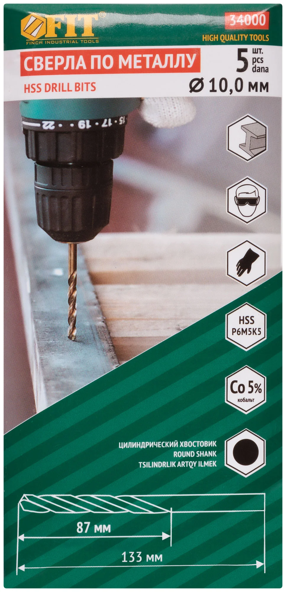 Сверла по металлу HSS с добавкой кобальта 5% Профи 10,0 мм ( 5 шт.)