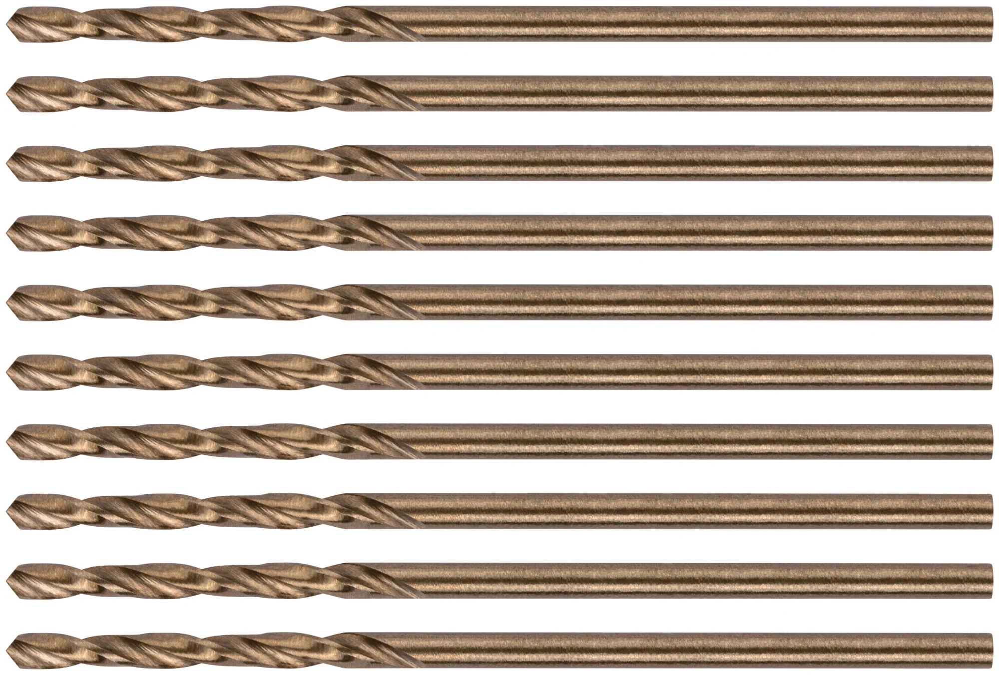 Изготовлены из быстрорежущей стали HSS марки Р6М5К5 с добавкой 5% кобальта, что обеспечивает высокую прочность и долговечность. Угол заточки в 135 градусов и цилиндрический хвостовик обеспечивают эффективное сверление и устойчивость к деформации. Сверла имеют вышлифованный профиль, что повышает точность обработки.