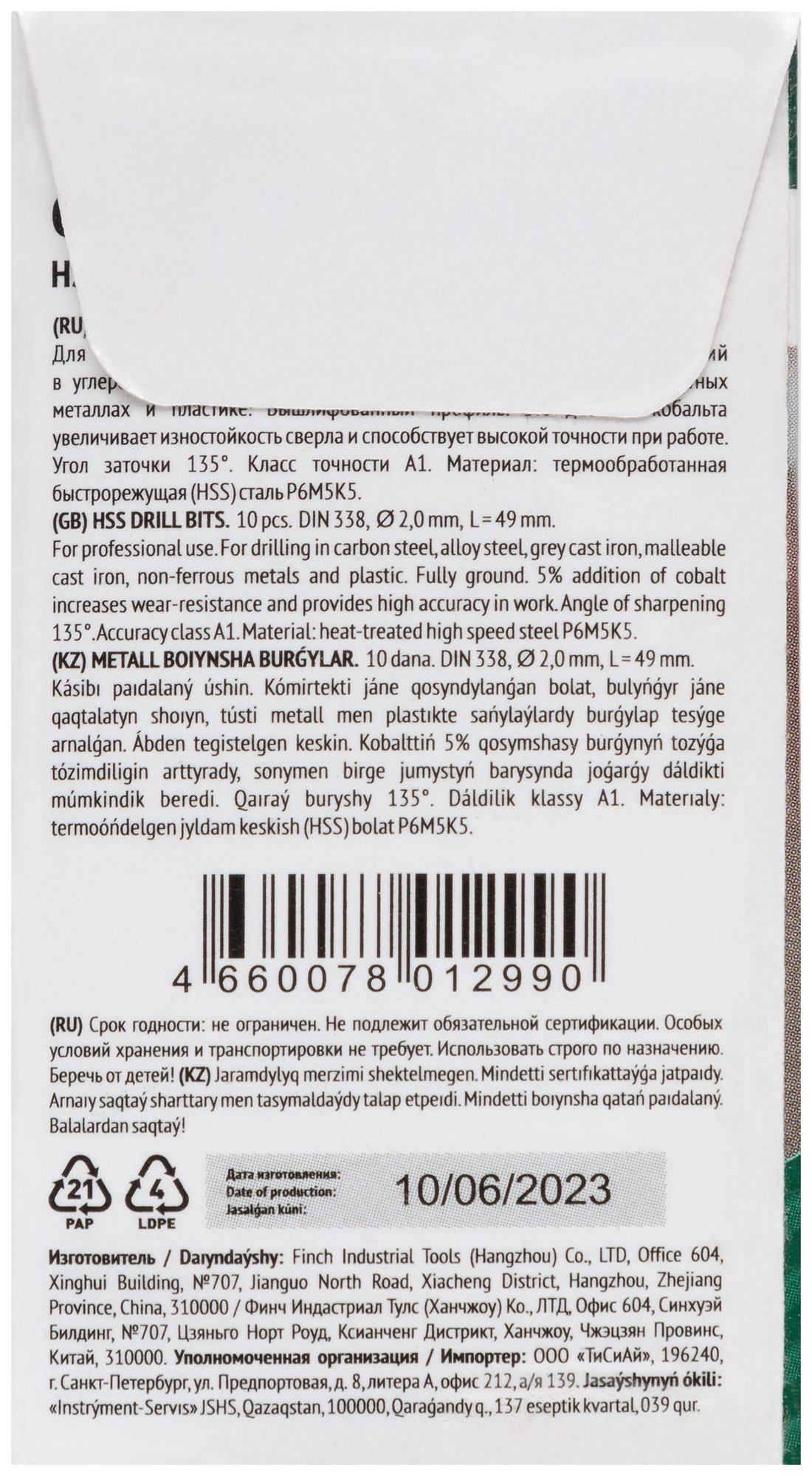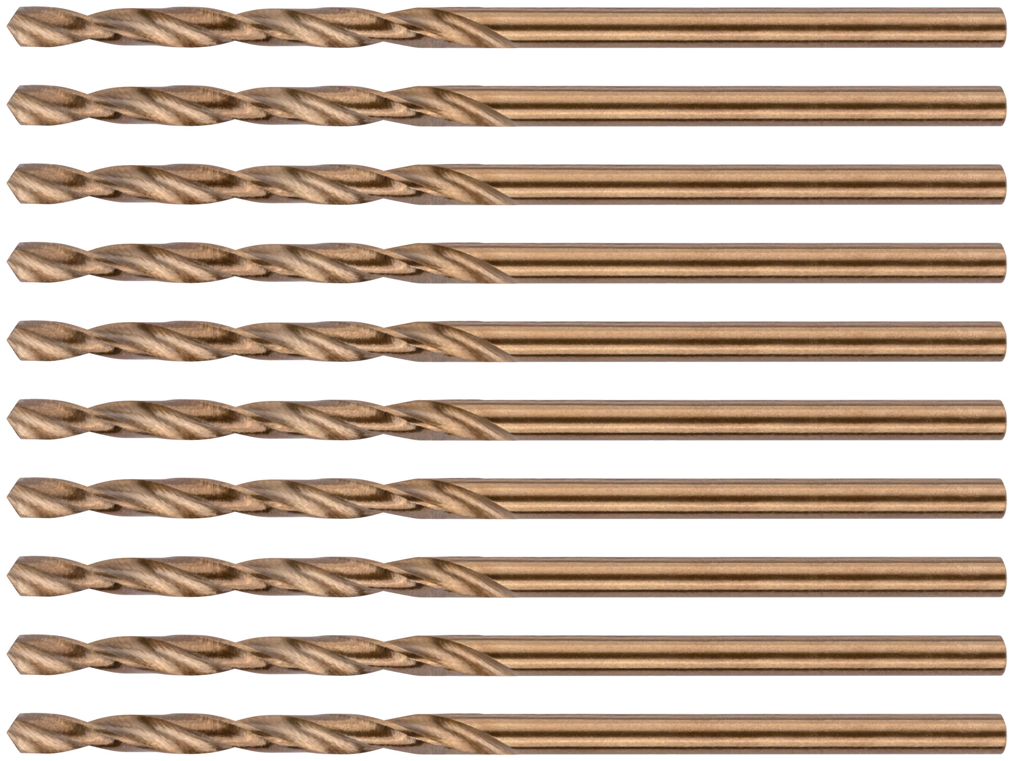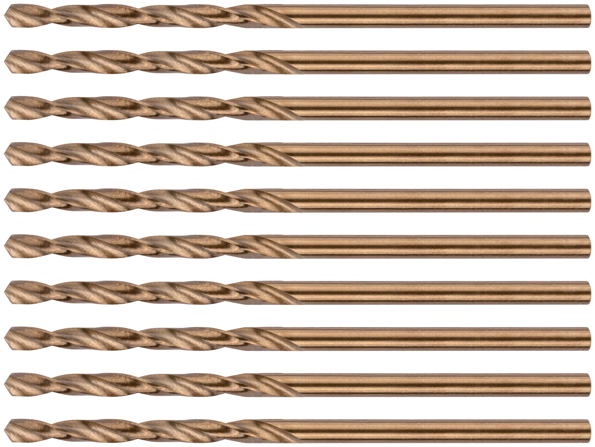 Сверла изготовлены из быстрорежущей стали HSS с добавлением 5% кобальта, что значительно увеличивает их прочность и износостойкость. Угол заточки 135 градусов и цилиндрический хвостовик обеспечивают точное и стабильное сверление. Профиль сверла вышлифован для минимизации трения и нагрева при работе.