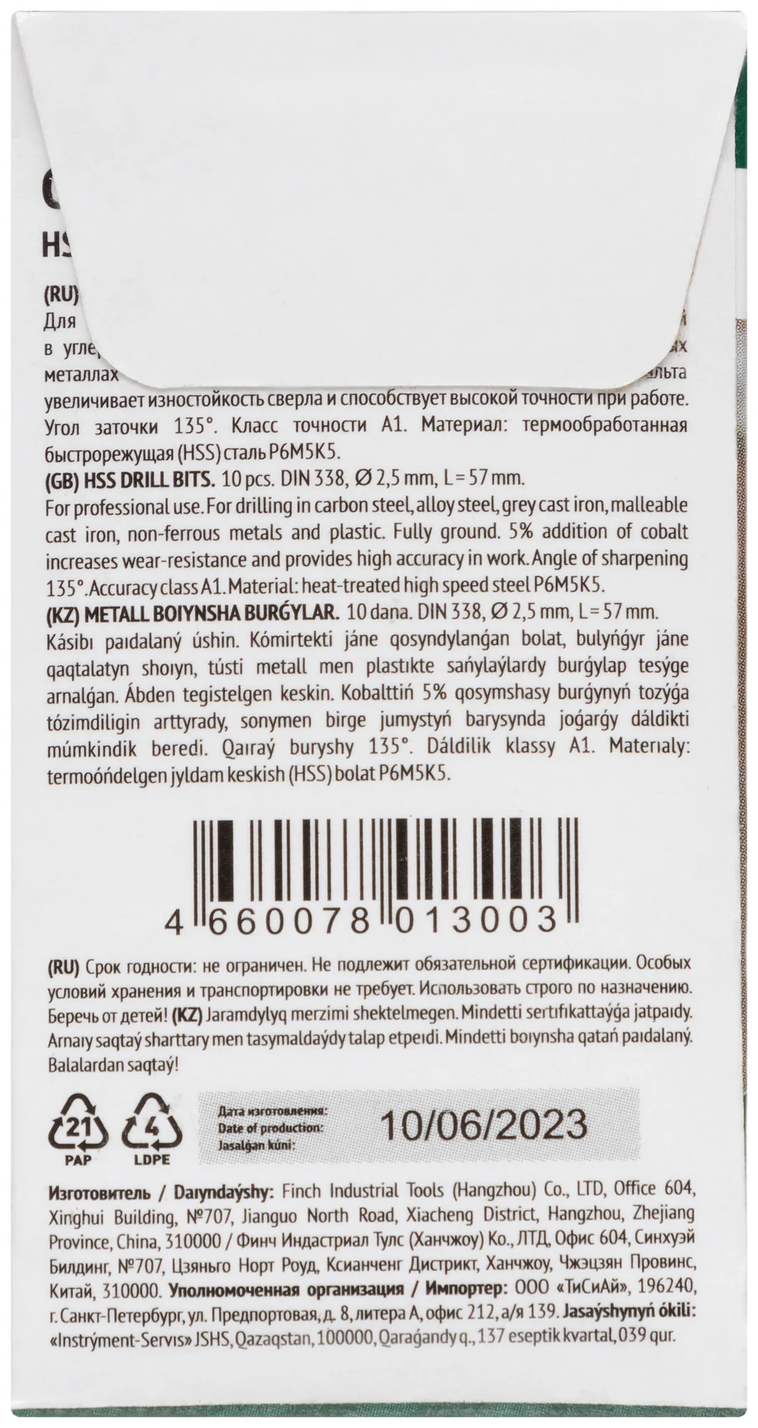 Эти сверла идеально подходят для профессиональных мастеров, занимающихся обработкой металлов. Набор из 10 сверл диаметром 2,5 мм позволяет выполнять точные и надежные сверления в различных металлических поверхностях, обеспечивая высокую производительность при минимальном износе.