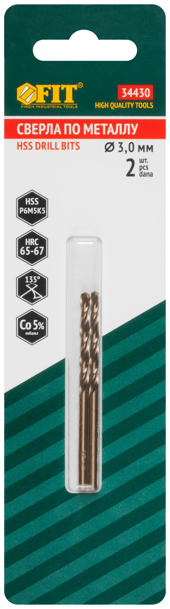 Сверла по металлу HSS с добавкой кобальта 5% Профи в блистере 3,0 мм ( 2 шт.)