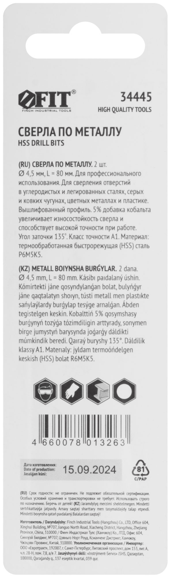 В сложных условиях профессионального производства, где требуется высокая точность и долговечность, сверла по металлу FIT с 5% добавкой кобальта станут незаменимым инструментом. Они отлично подходят для сверления твердых металлов, таких как нержавеющая сталь и сплавы.