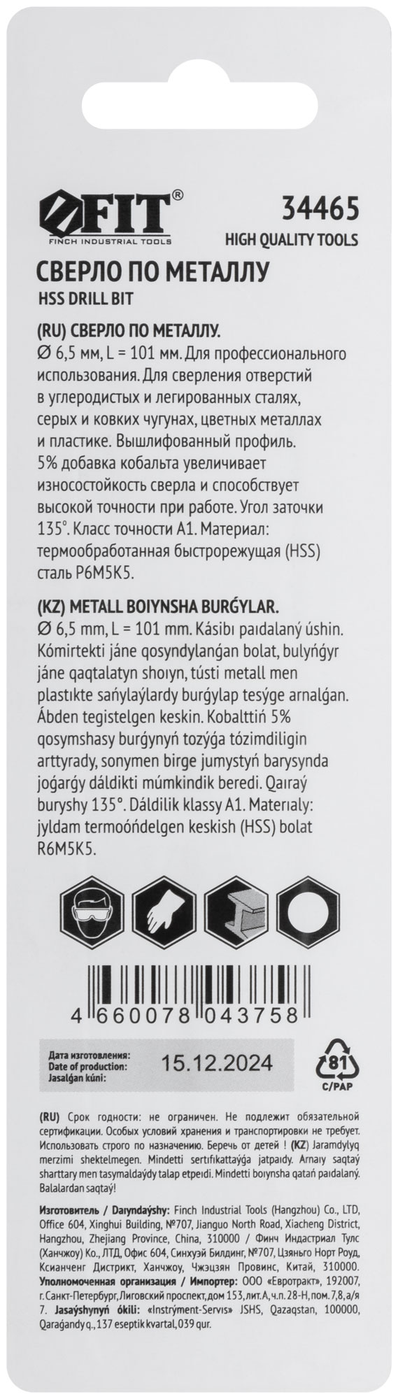 Выберите сверло от FIT 34465, чтобы максимально повысить эффективность и точность ваших сверлильных работ.